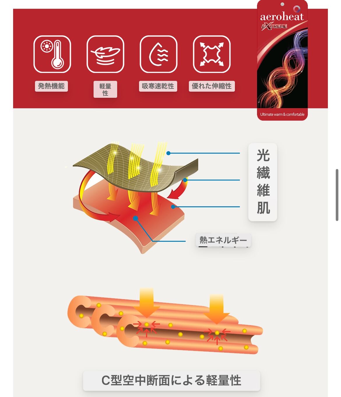 空気を含んで熱を保存し、光を吸収して自然に発熱するヒョソンティーアンドシーのエアロヒット生地を使用しました。