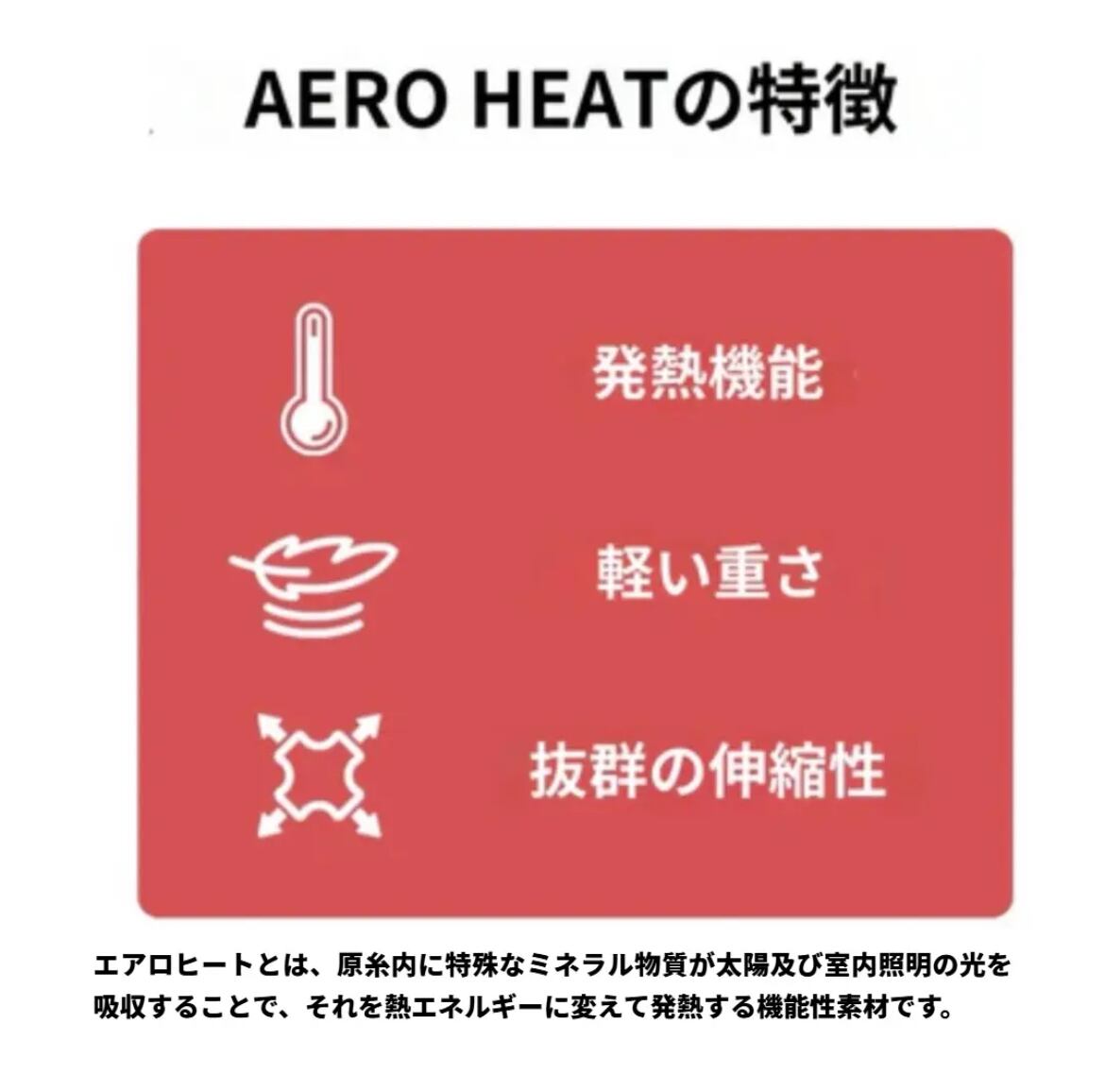 エアロヒートとは、原糸内に特殊なミネラル物質が太陽及び室内照明の光を吸収することで、それを熱エネルギーに変えて発熱する機能性素材です。