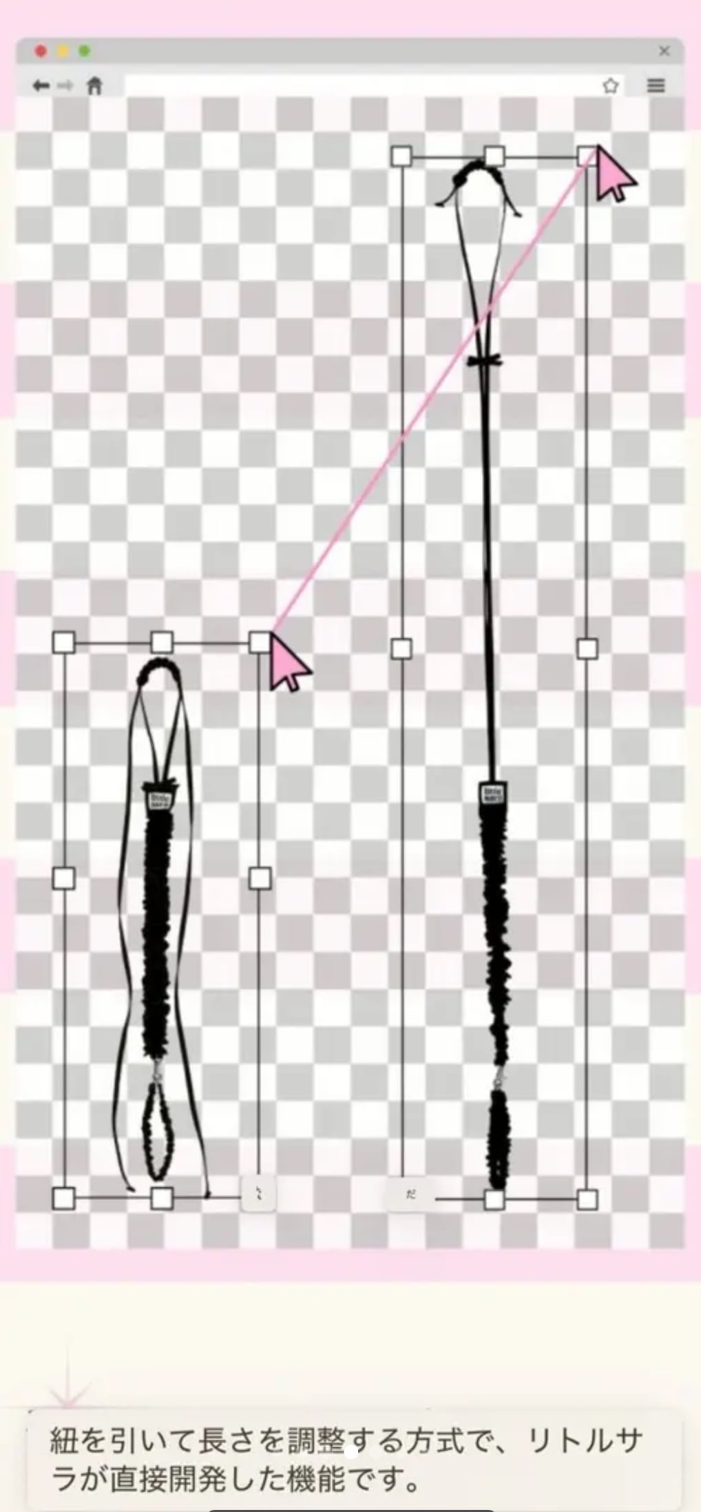 紐を引いて調整するタイプのリードはlittle sara オリジナル商品