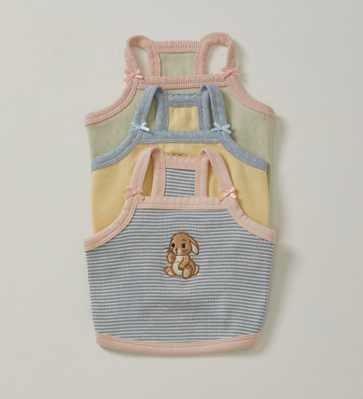 ᆞピンクドットパターンの肩紐の配色ディテール